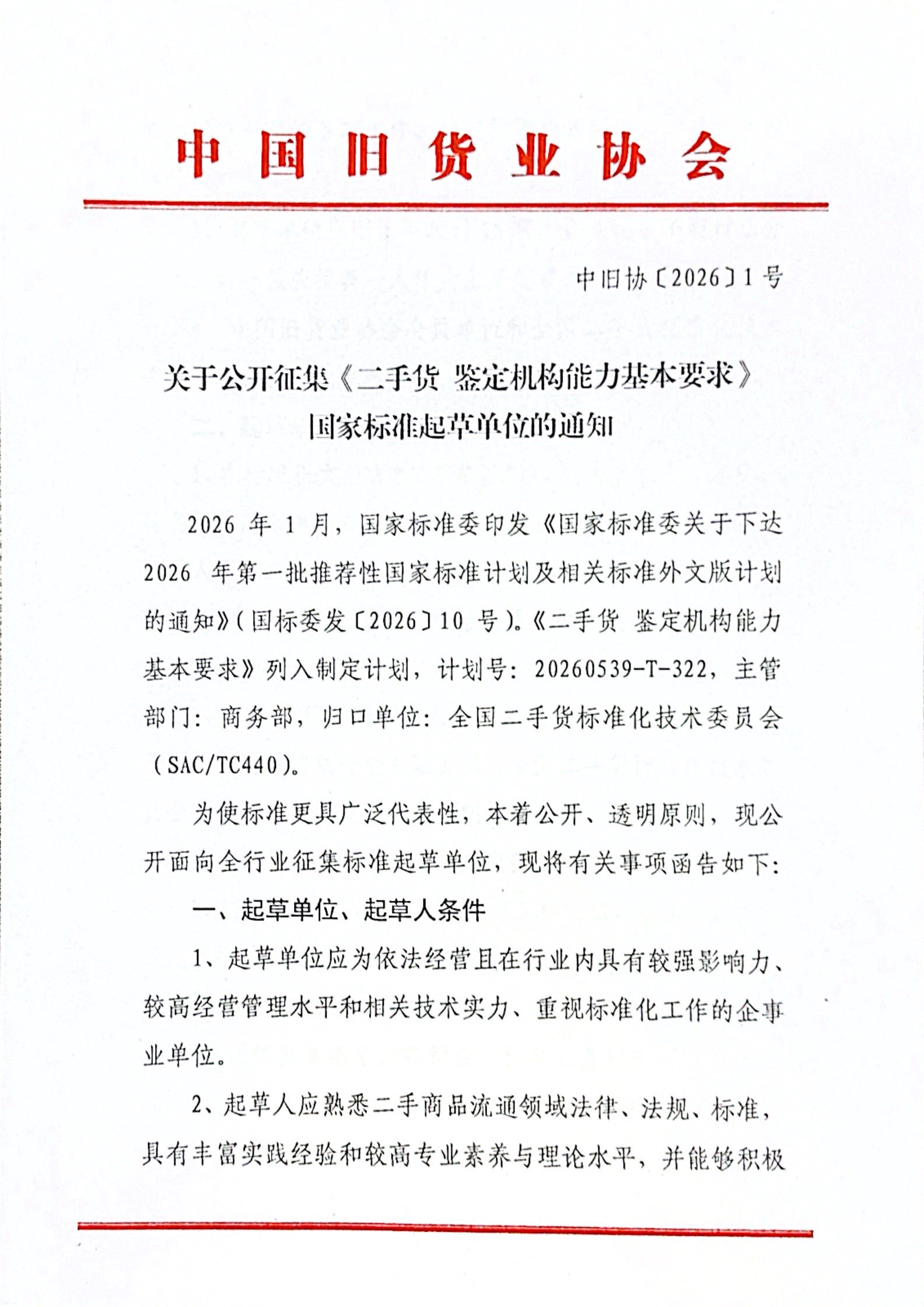 关于公开征集《二手货 鉴定机构能力基本要求》国家标准起草单位的通知