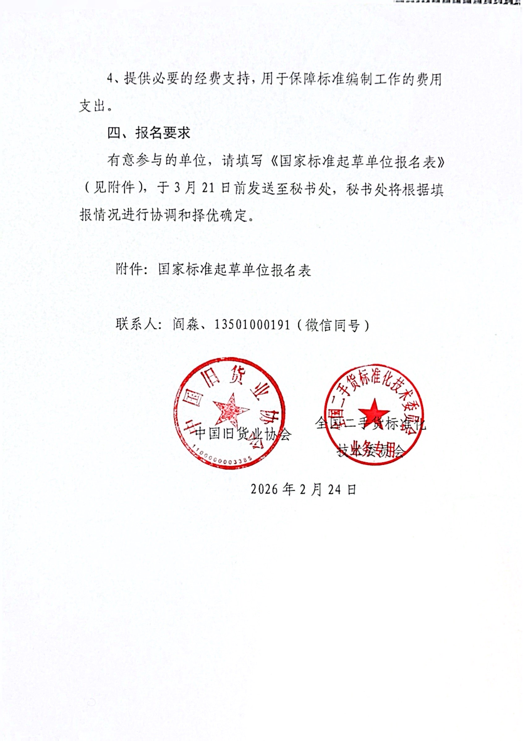 国家标准起草单位报名表