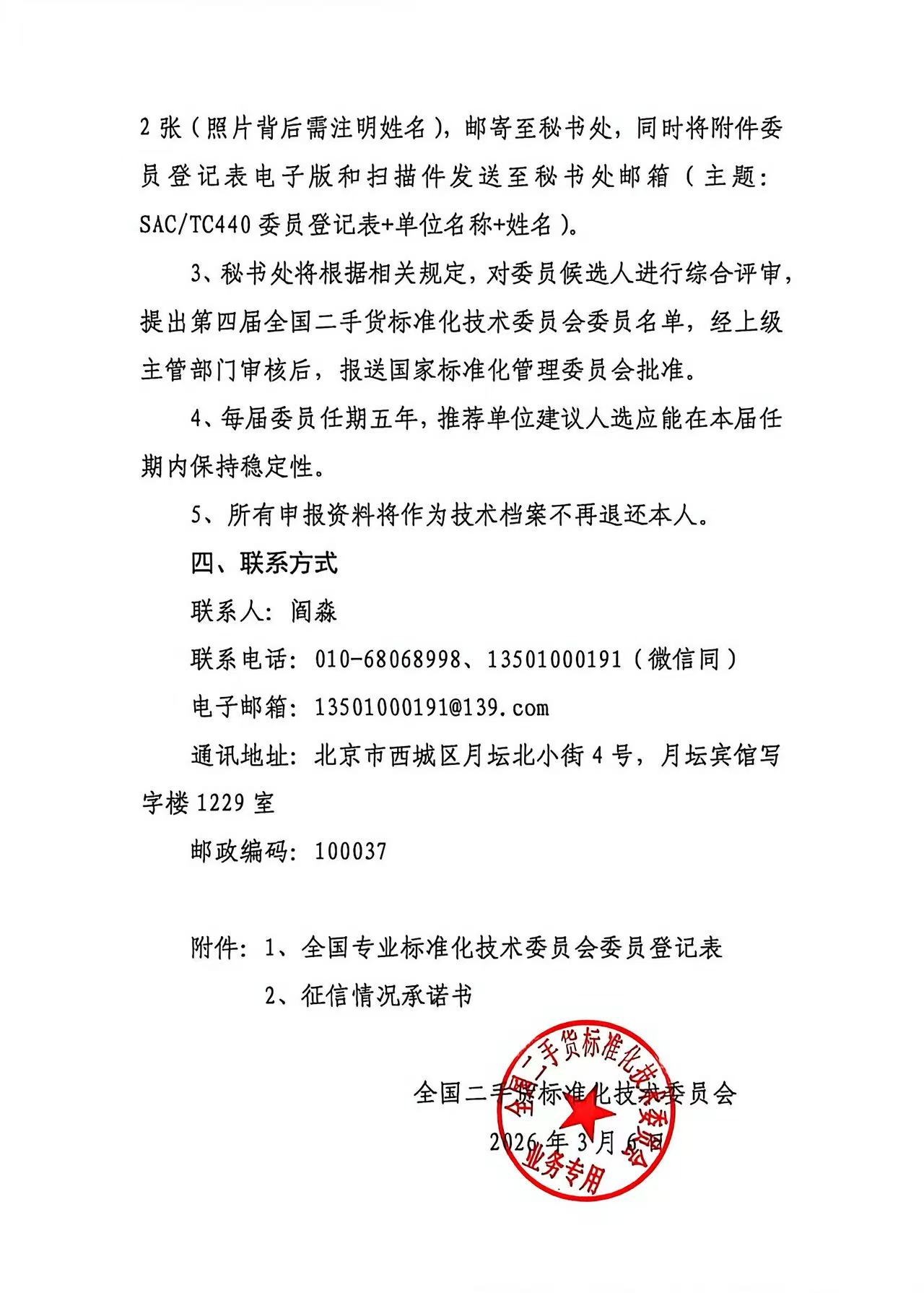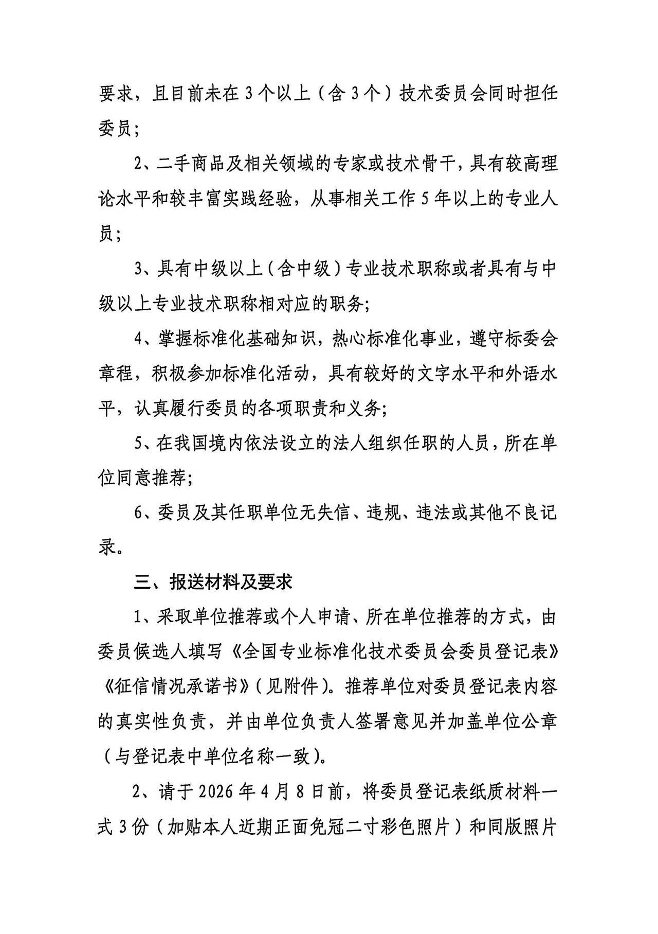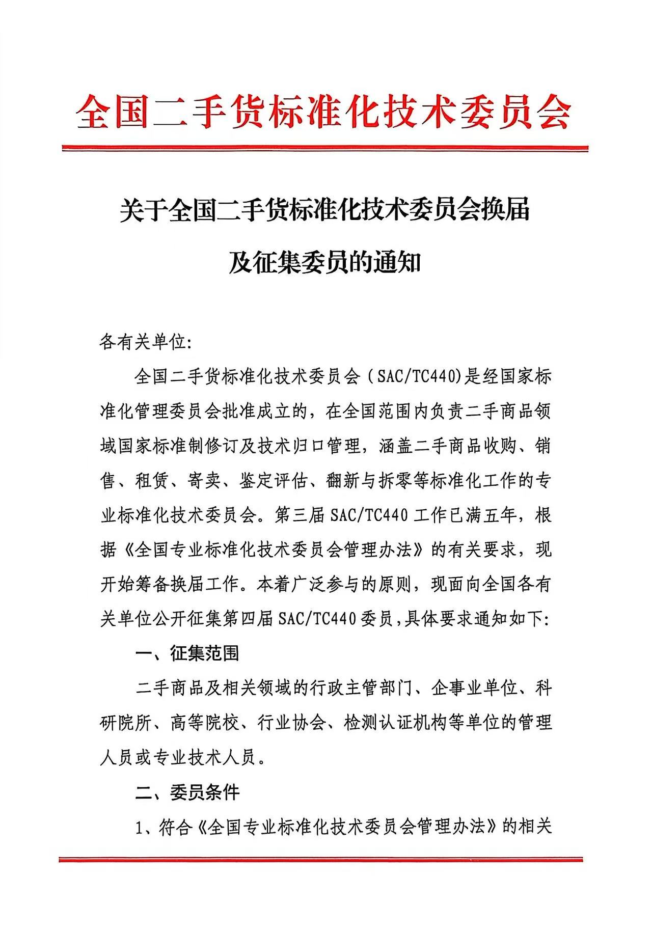 关于全国二手货标准化技术委员会换届及征集委员的通知