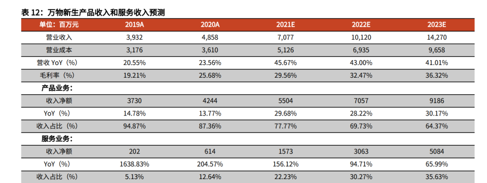 公司营业收入来自于产品销售收入和服务收入,其中,公司产品销售收入主要分 为线上和线下产品净收入。线上产品销售受益于:1)拍拍、拍机堂两大平台积 极加强 Switch、智能手表、摄影设备等其他产品品类的扩展,产品矩阵不断完 善,和京东、快手达成合作关系后将会扩大公司 2C 端消费者覆盖范围,为线上 平台带来更多流量和货源;2)截至 2021 年 6 月 30 日,拍拍、拍机堂及线下爱 回收数量已经超过 700 家,未来门店数量及门店交易量有望持续提升,2020 年 线下门店和自助服务站网络持续扩展速度由于疫情原因有所放缓,我们预计未来 将维持较高的开店速度,继续增强对低线城市的渗透,预计产品销售收入将实现 稳步增长。我们预计 2021-2023 年产品销售收入增速分别为 29.68%/28.22%/ 30.17%。