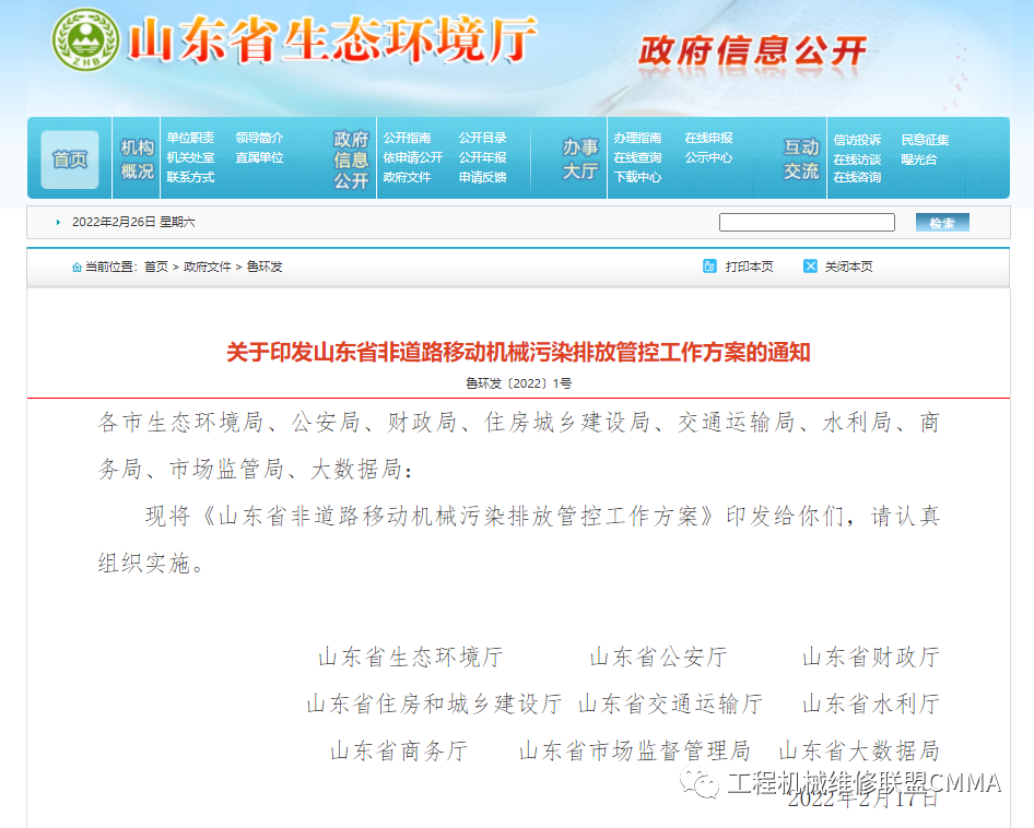 2022年2月17日,山东省生态环境厅等9部门联合印发了《山东省非道路移动机械污染排放管控工作方案》(以下简称《方案》),有关政策解读如下。