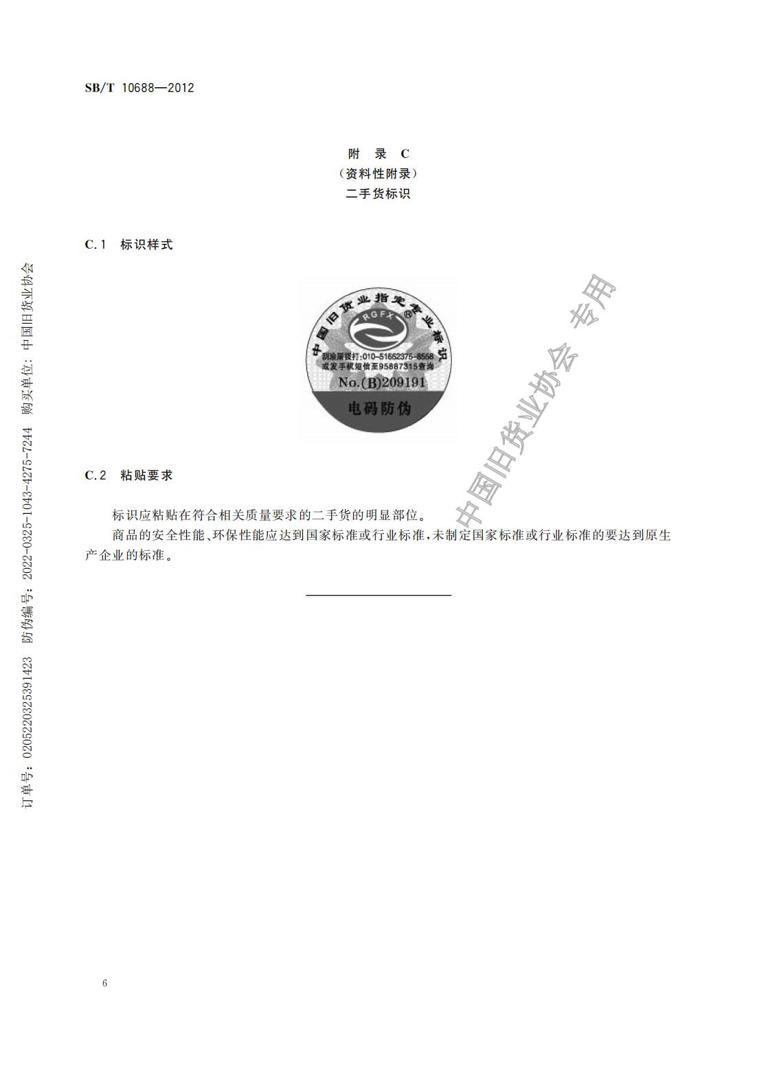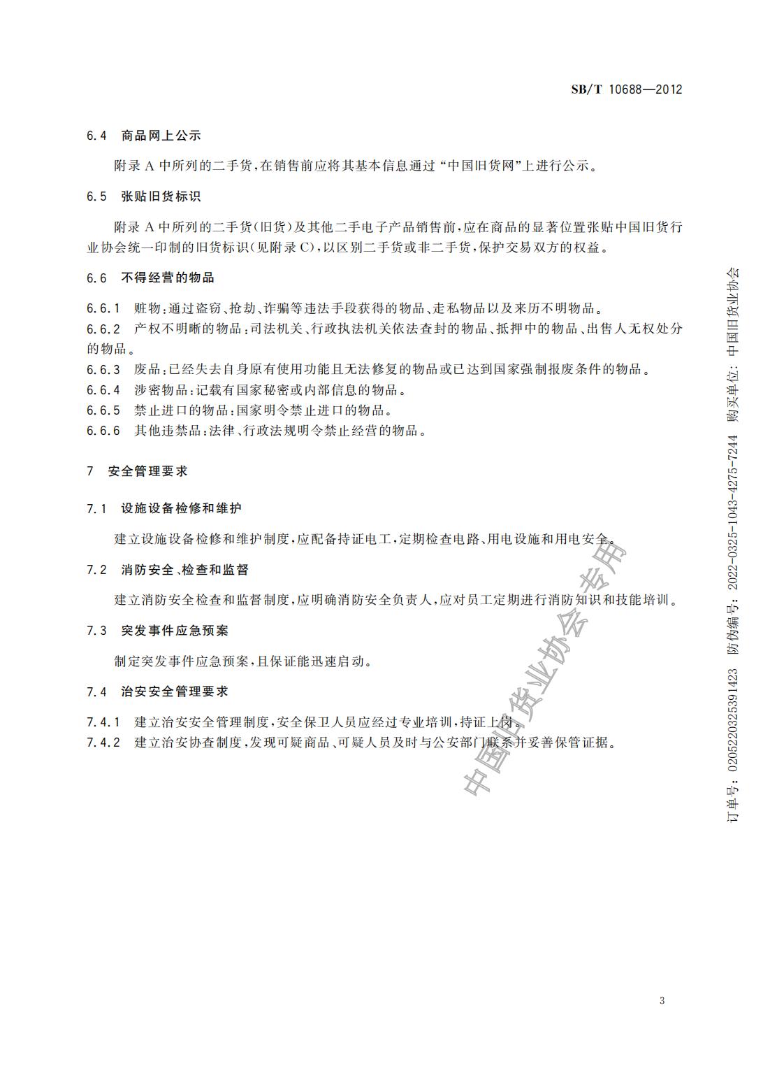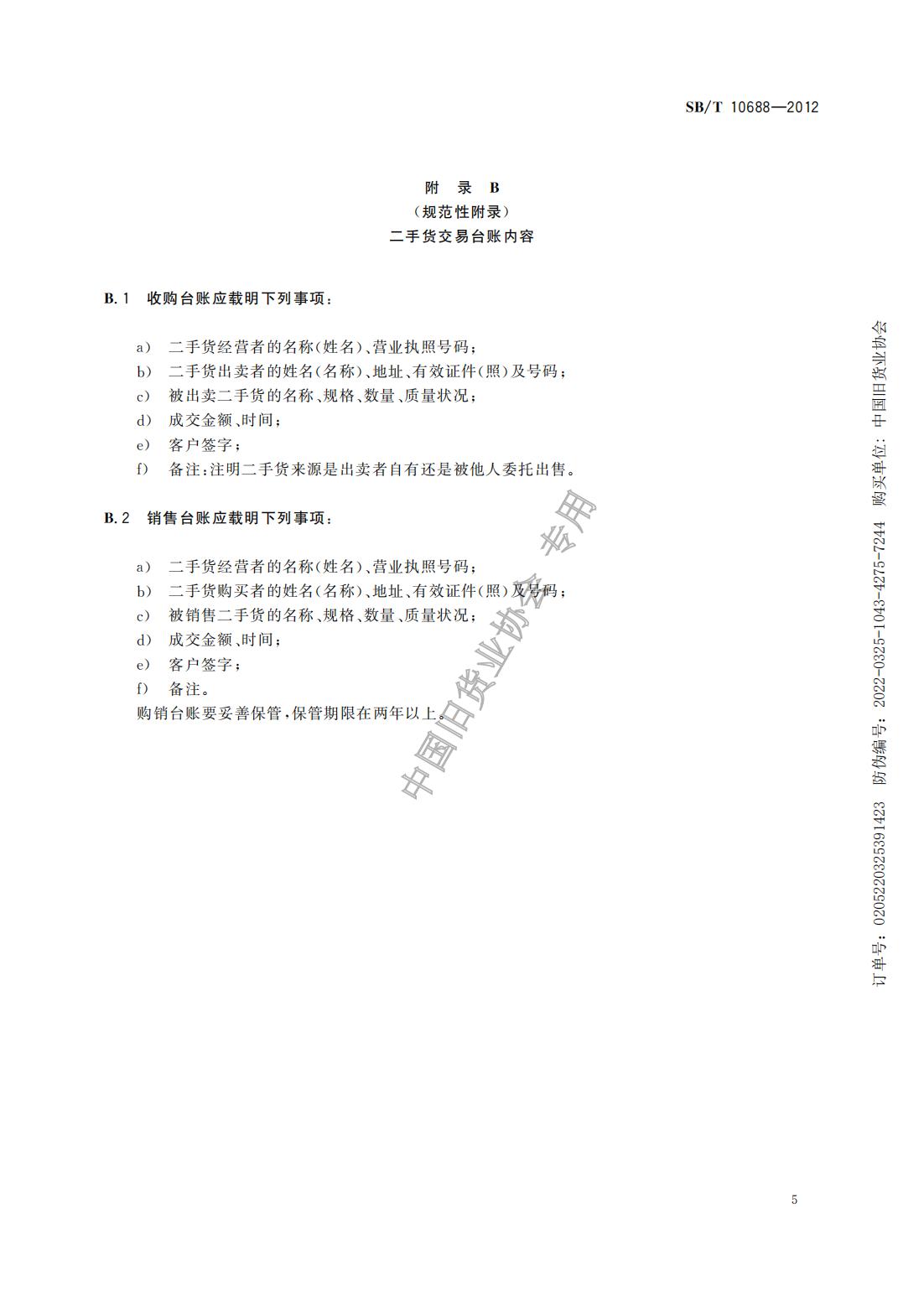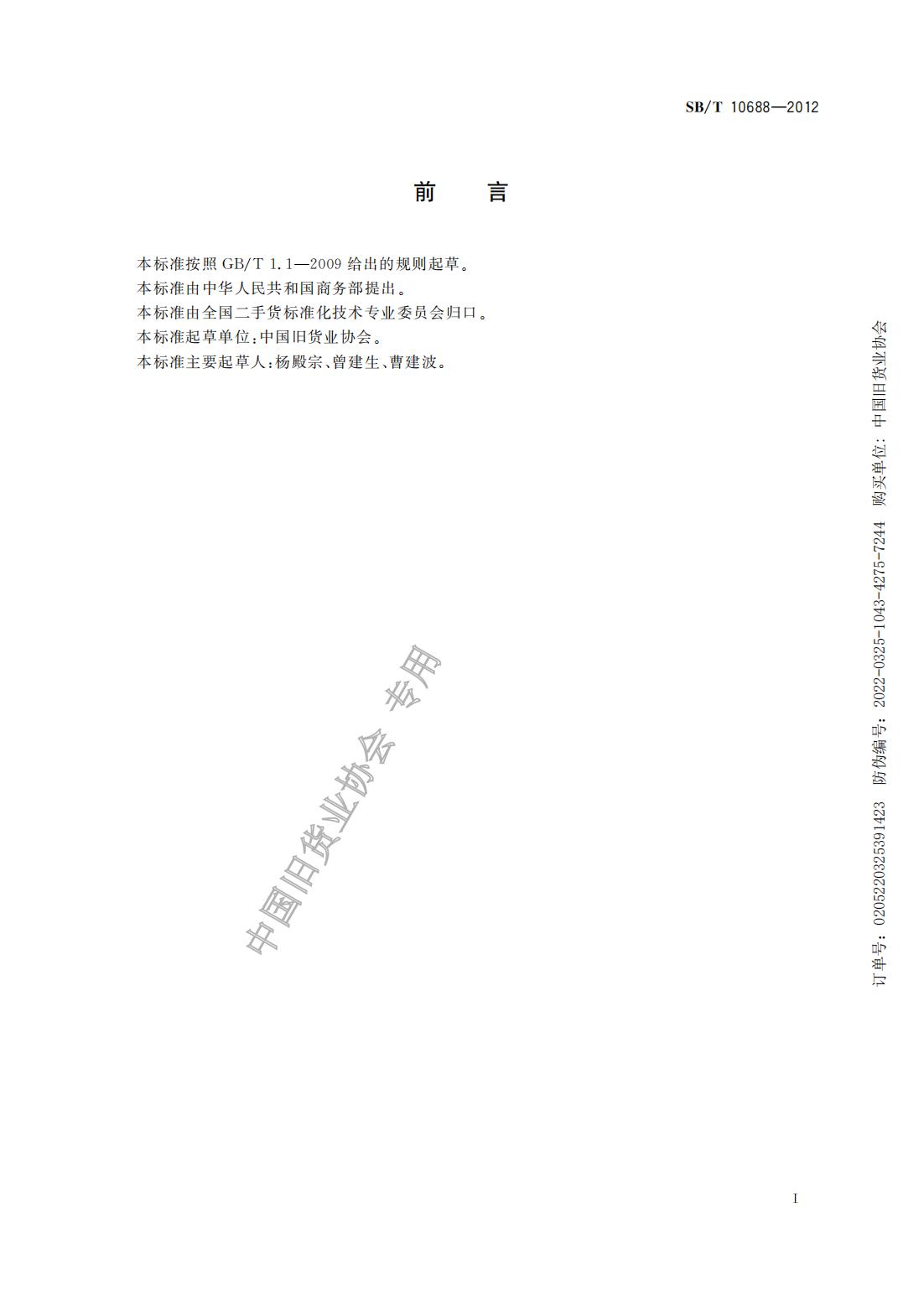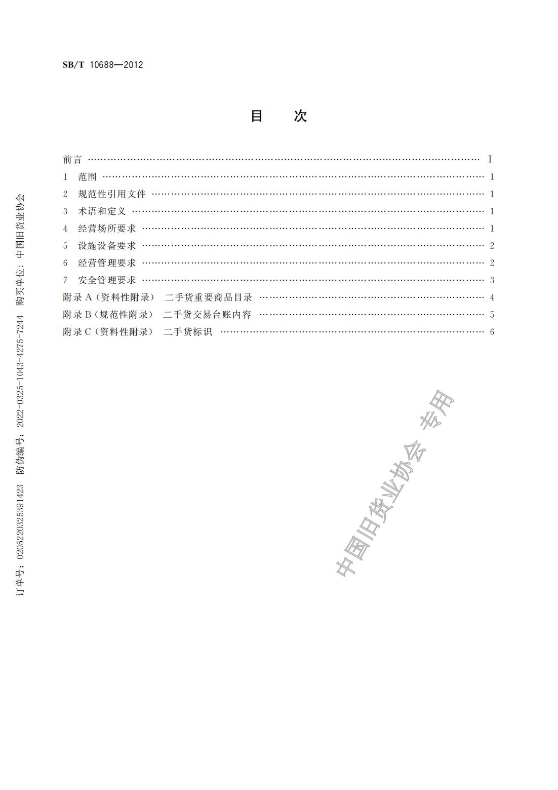 《二手货(旧货)经营企业经营管理规范》SB/T 10688-2012