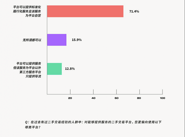 沙利文的调研数据也显示,国内在有过二手交易经验的受访者中,高达71.4%的受访者更偏向选择可以提供自营标准化、履约化服务的闲置物品交易平台。