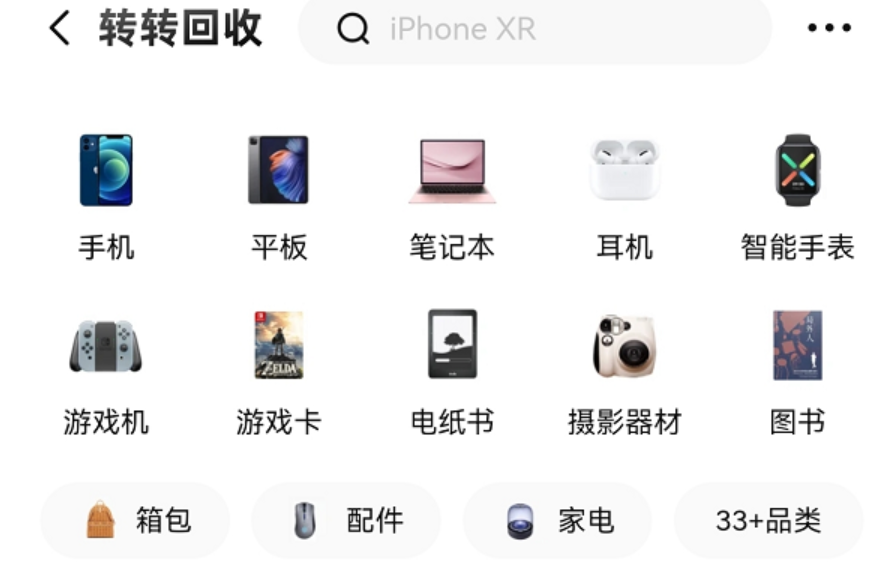 如转转不断丰富业务模式,在C2B2C为主的服务模式下,消费者从平台的官方验商城购买商品,同时还能使用转转回收服务来卖出闲置。