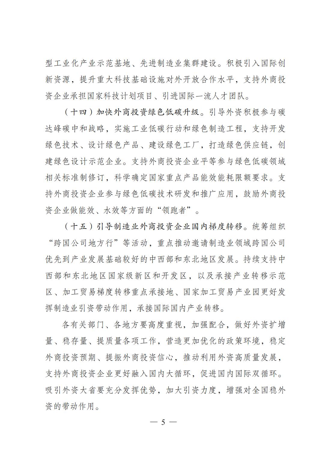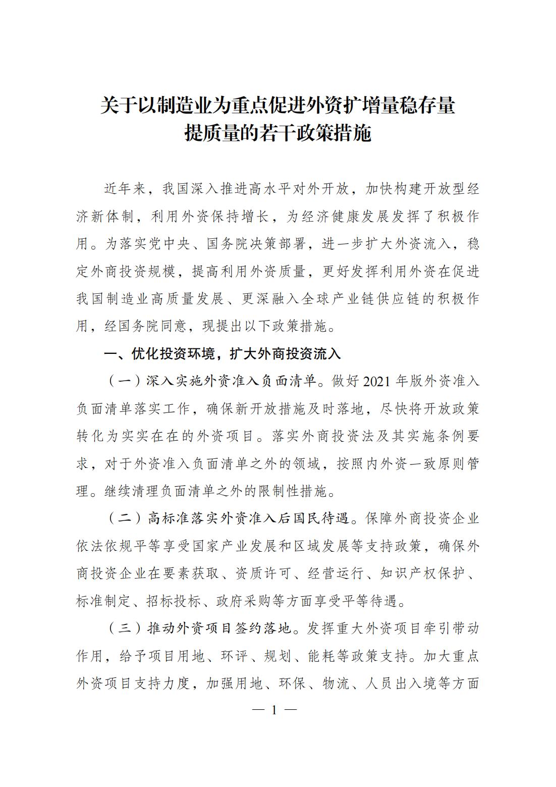 《关于以制造业为重点促进外资扩增量稳存量提质量的若干政策措施》已经国务院同意,现印发给你们,请认真组织实施。