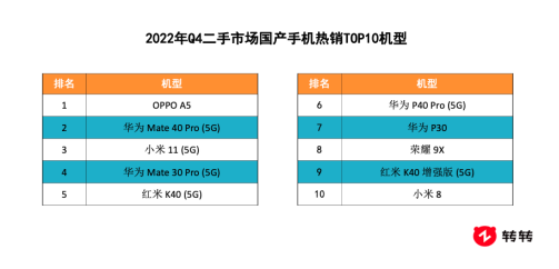 四季度国产二手神机仍为OPPO A5,这已是该机型连续7个季度登顶国产第一;并且该机型的回收热度也仍在持续,同样连续多个季度登顶国产手机回收榜。