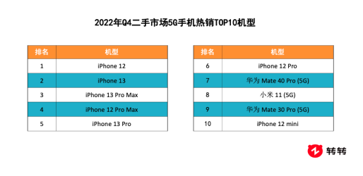 对此,转转集团数据部的分析师表示,本季度iPhone14系列的高热度还在持续。而且随着时间的推进,5G手机越来越成为消费者的购机首选。消费者购机时仍然注重性价比,转转为消费者提供了更多元的5G手机购买渠道和选择空间。