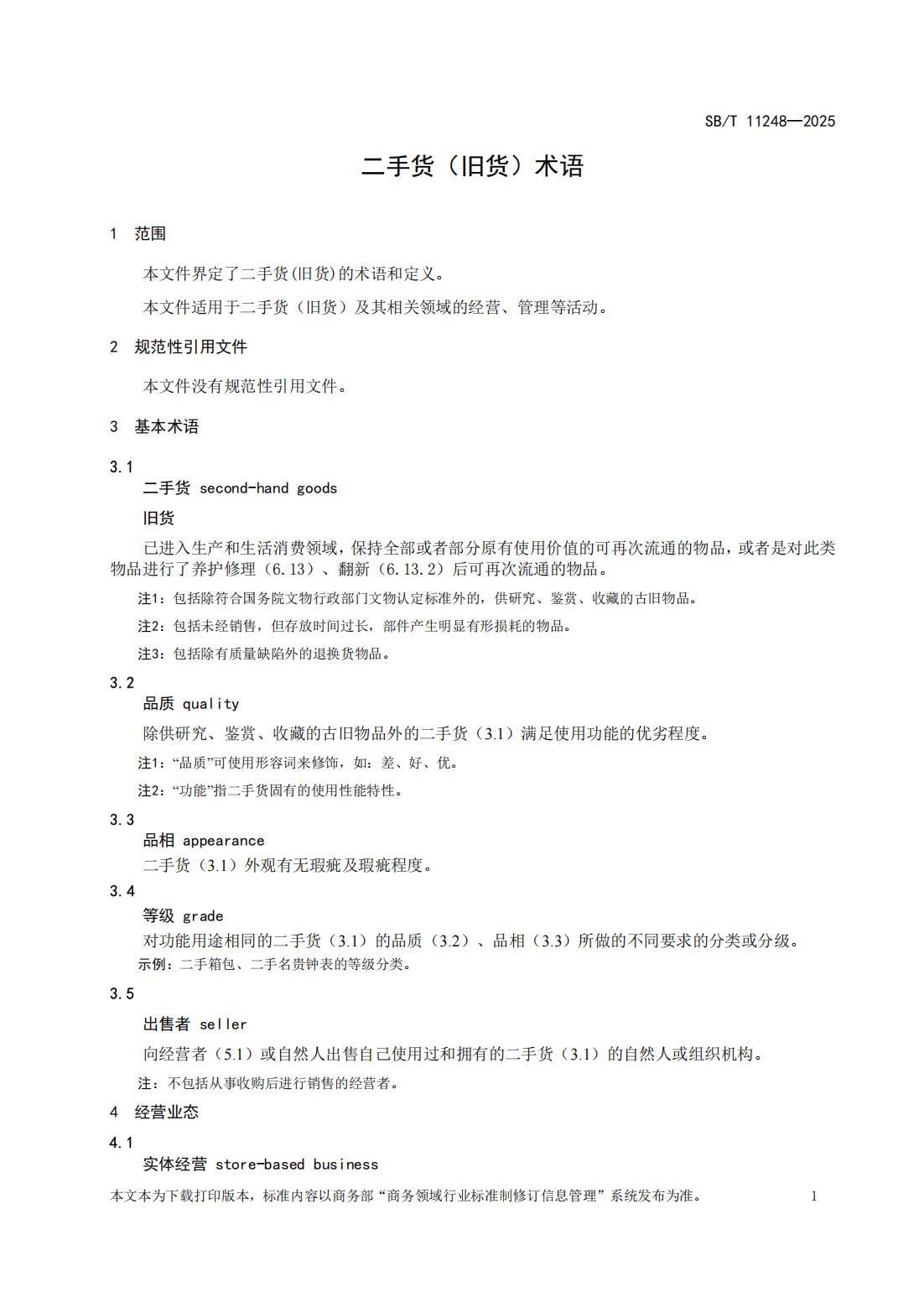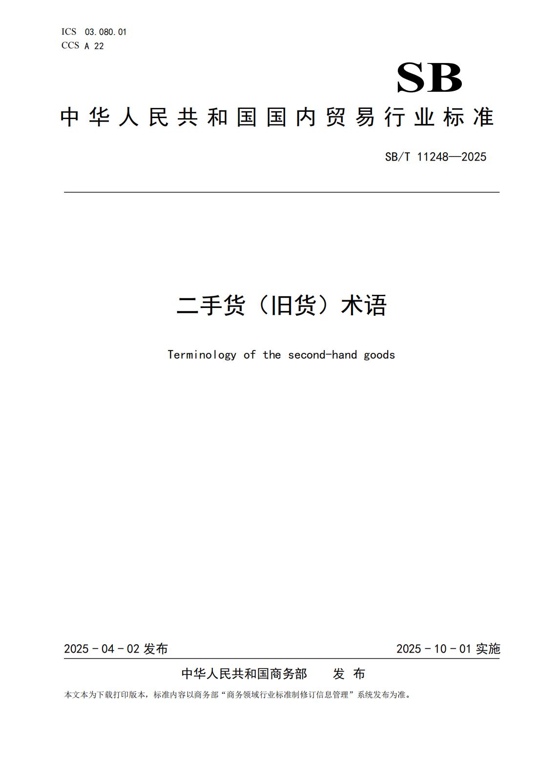 SB/T11248-2025《二手货(旧货)术语》行业标准