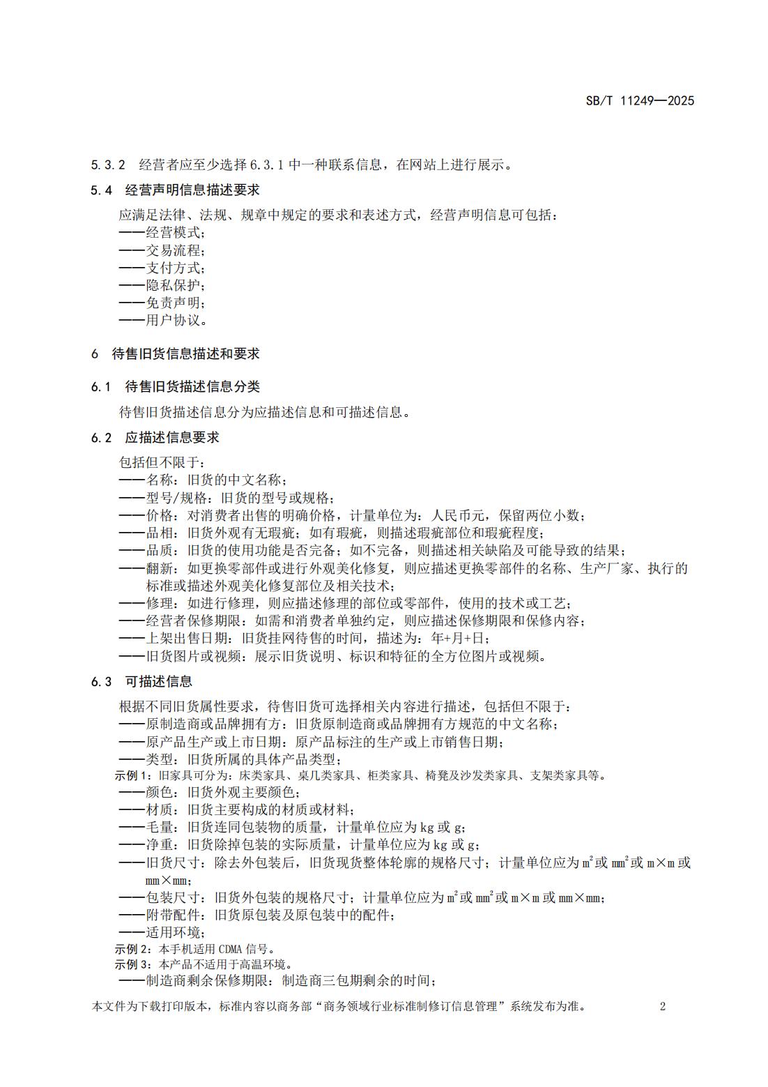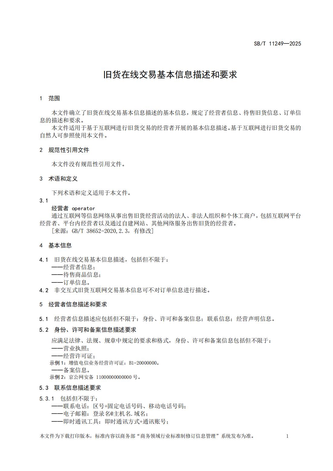 SB/T11249-2025《旧货在线交易基本信息描述和要求》行业标准