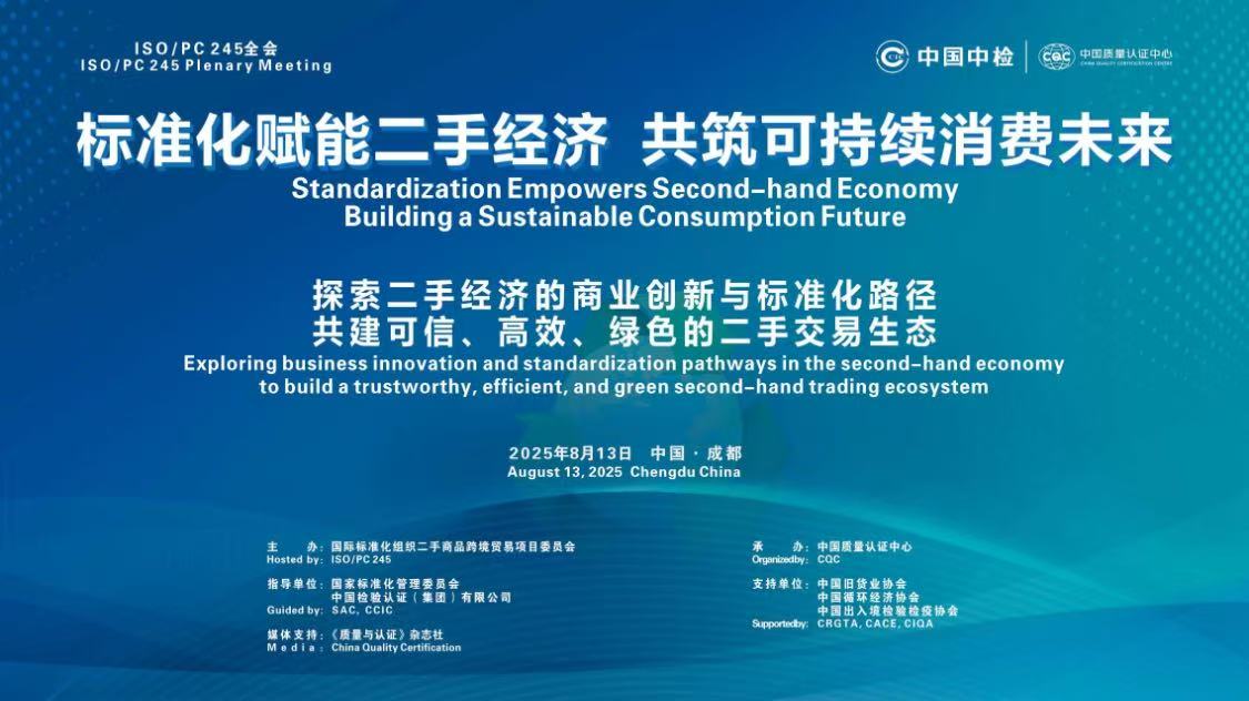 2025 年 8 月 13 日,由国际标准化组织二手商品跨境贸易项目委员会(ISO/PC 245)主办的 “标准化赋能二手经济 共筑可持续消费未来” 国际会议在成都隆重召开。大会汇聚了二手商品跨境贸易领域代表性的行业领袖、政策制定者及技术专家共商二手经济国际标准化发展大计。
