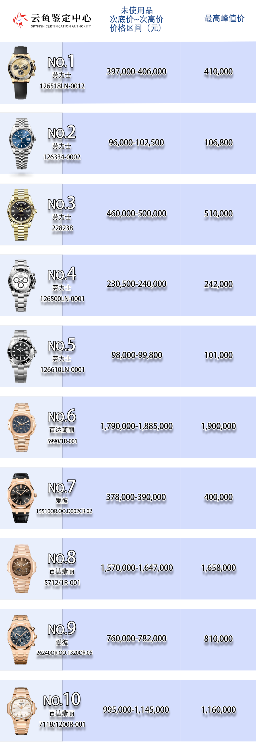 整体来看,高端品牌贵金属款持续走强,中低价位市场增长乏力,“高端化”的趋势越发明显。但是,盲目追高并不等于保值,云鱼建议大家要理性判断、谨慎入手。