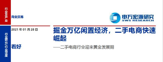2021年1月底,第三方机构申万宏源发布了一份名为《掘金万亿闲置经济,二手电商快速崛起》的研究报告(以下简称申万宏源研报)。