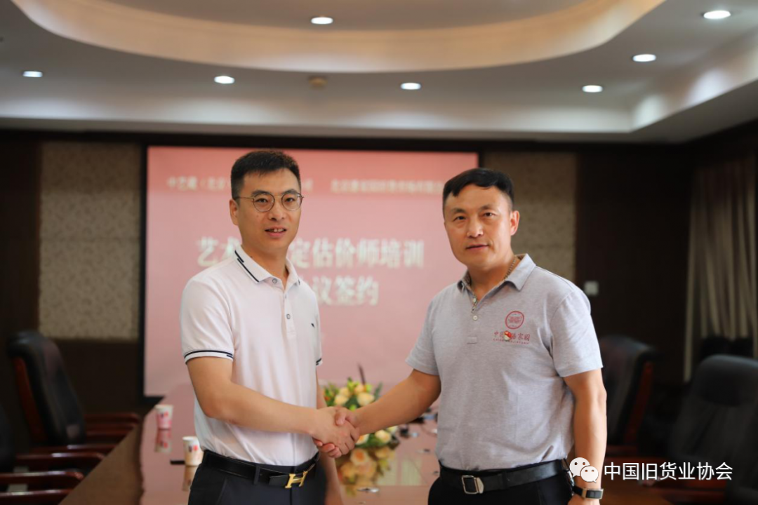 2021年7月27日, 中国旧货业协会文化艺术品委员会秘书长单位<中艺藏(北京)文物鉴定有限公司>与北京潘家园旧货市场有限公司合作正式签约,双方将发挥各自优势,围绕首都文化中心、国际交往中心的功能定位,结合首都文博事业发展的新趋势,采取以培训项目合作落地,逐渐探索新项目合作的方式,在艺术品鉴定培训等领域逐步展开合作。