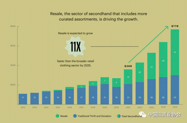 图1:2012-2025年二手交易产值统计及预估(数据来源:ThredUp 2021转售报告)