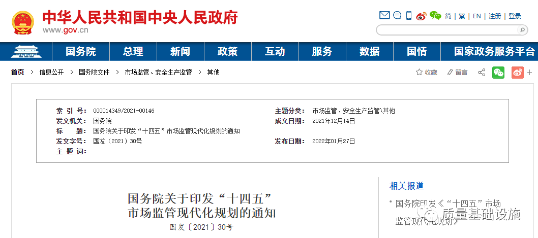 近日,国务院印发《“十四五”市场监管现代化规划》(以下简称《规划》),围绕“大市场、大质量、大监管”,对推进市场监管现代化作出了系统性部署。