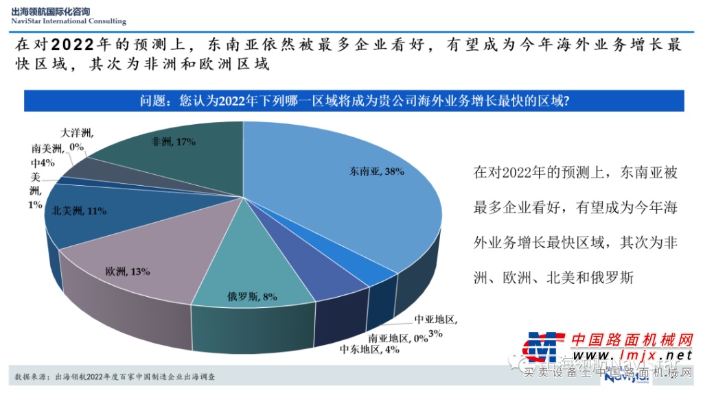 未来预测:在对2022年的预测上,东南亚依然被最多企业看好,有望成为今年海外业务增长最快区域,其次为非洲和欧洲区域。
