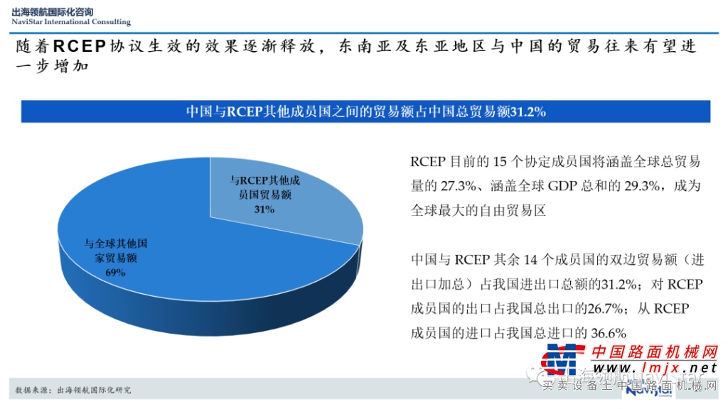 数据显示:RCEP 目前的 15 个协定成员国将涵盖全球总贸易量的 27.3%、涵盖全球 GDP 总和的 29.3%,成为全球最大的自由贸易区。