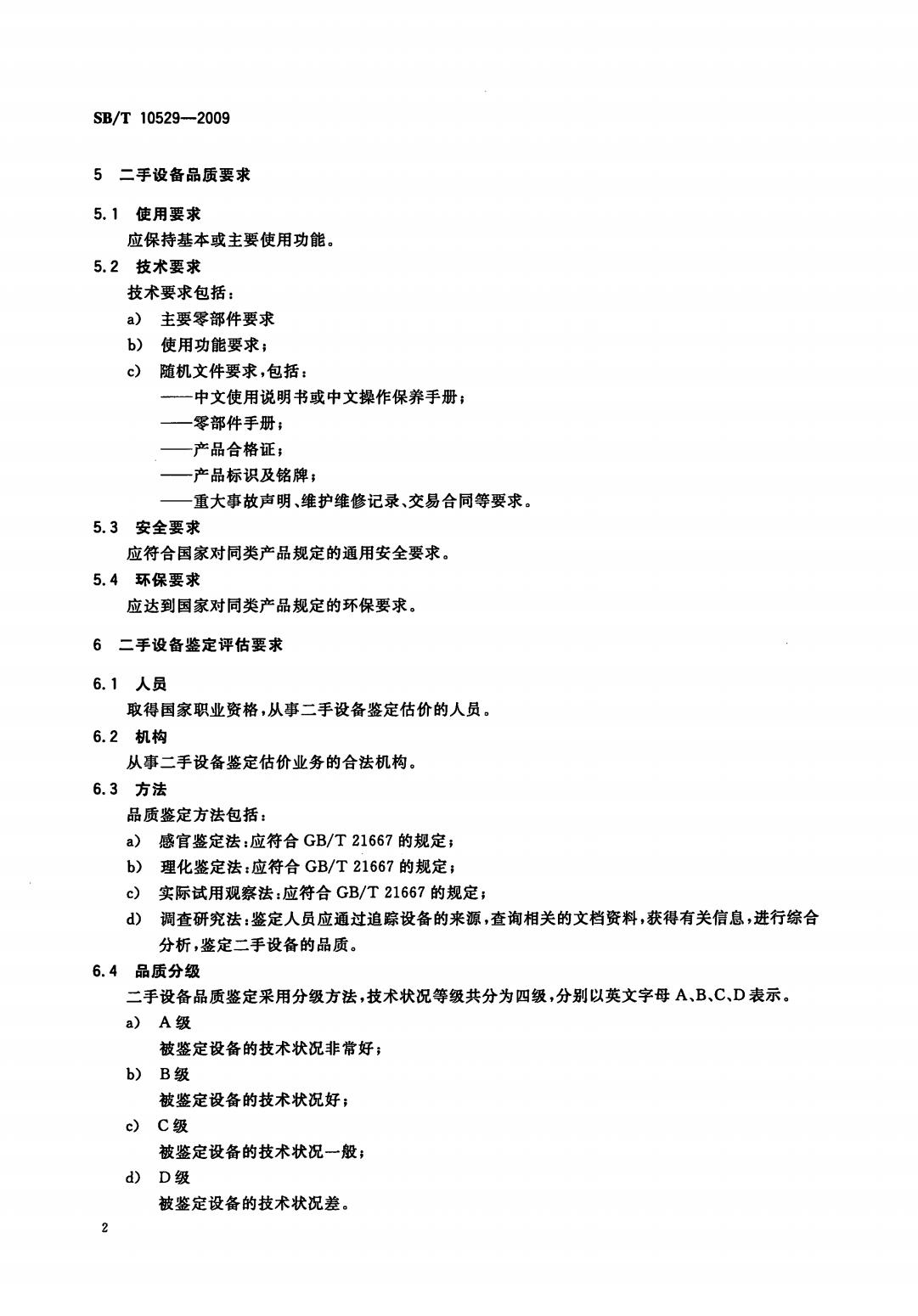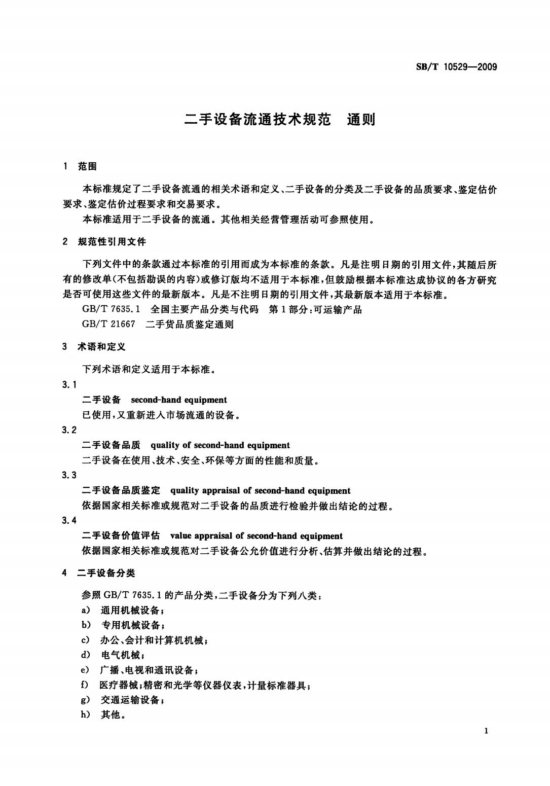 《二手设备流通技术规范 通则》SB/T10529-2009