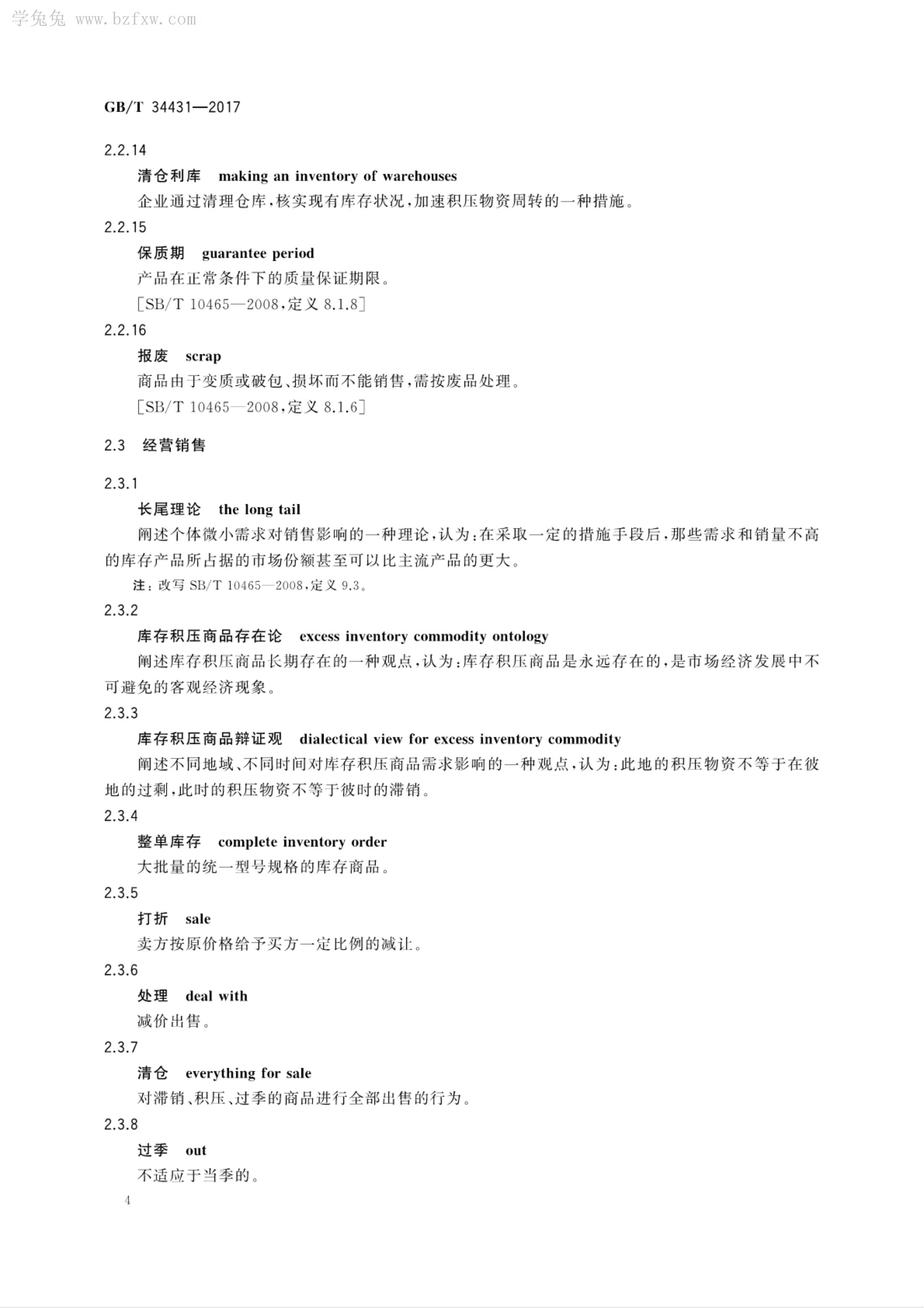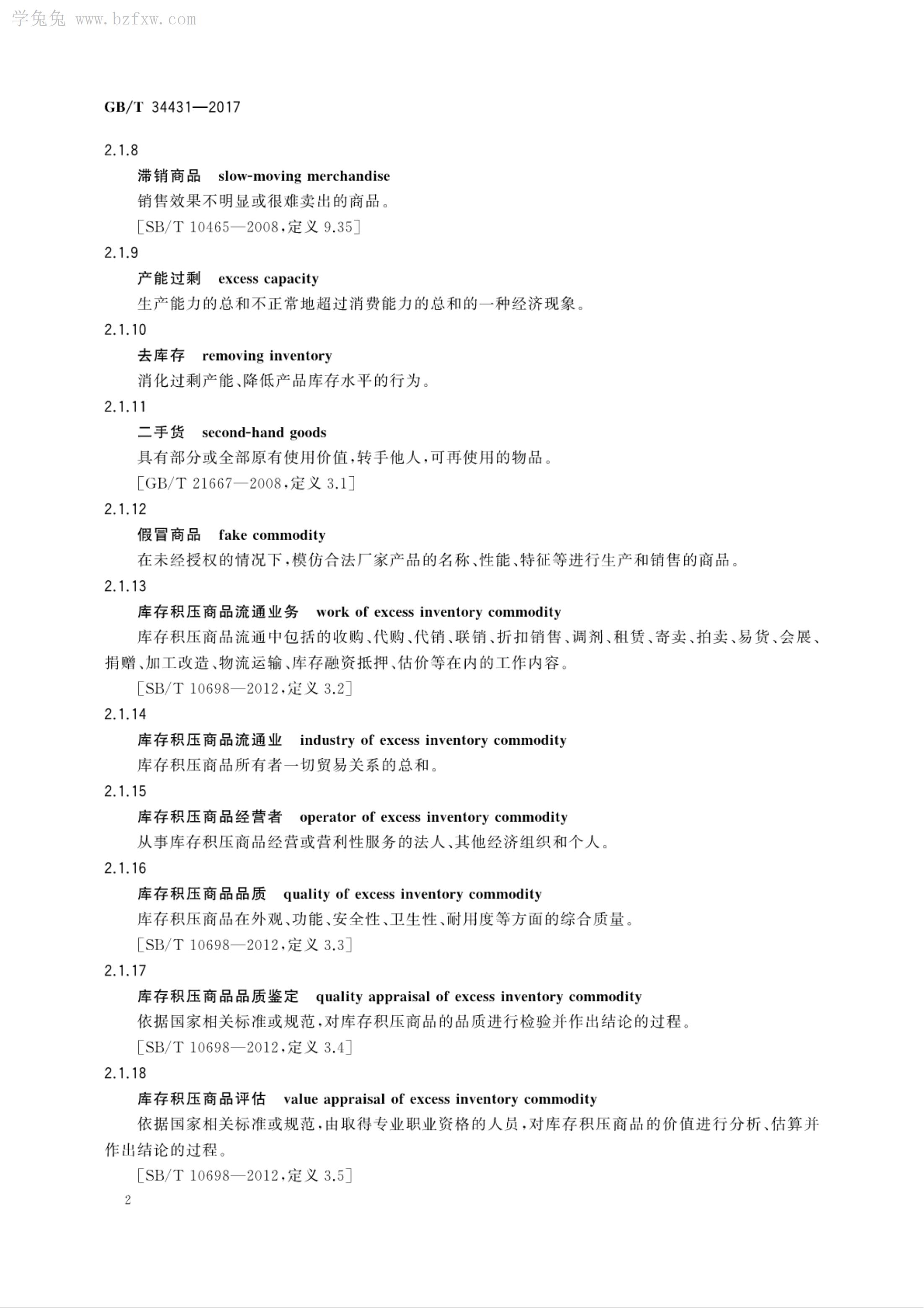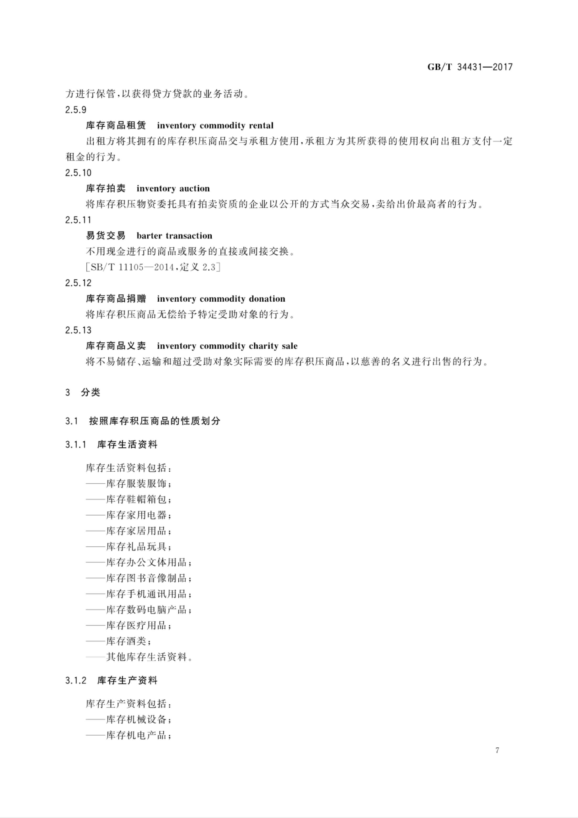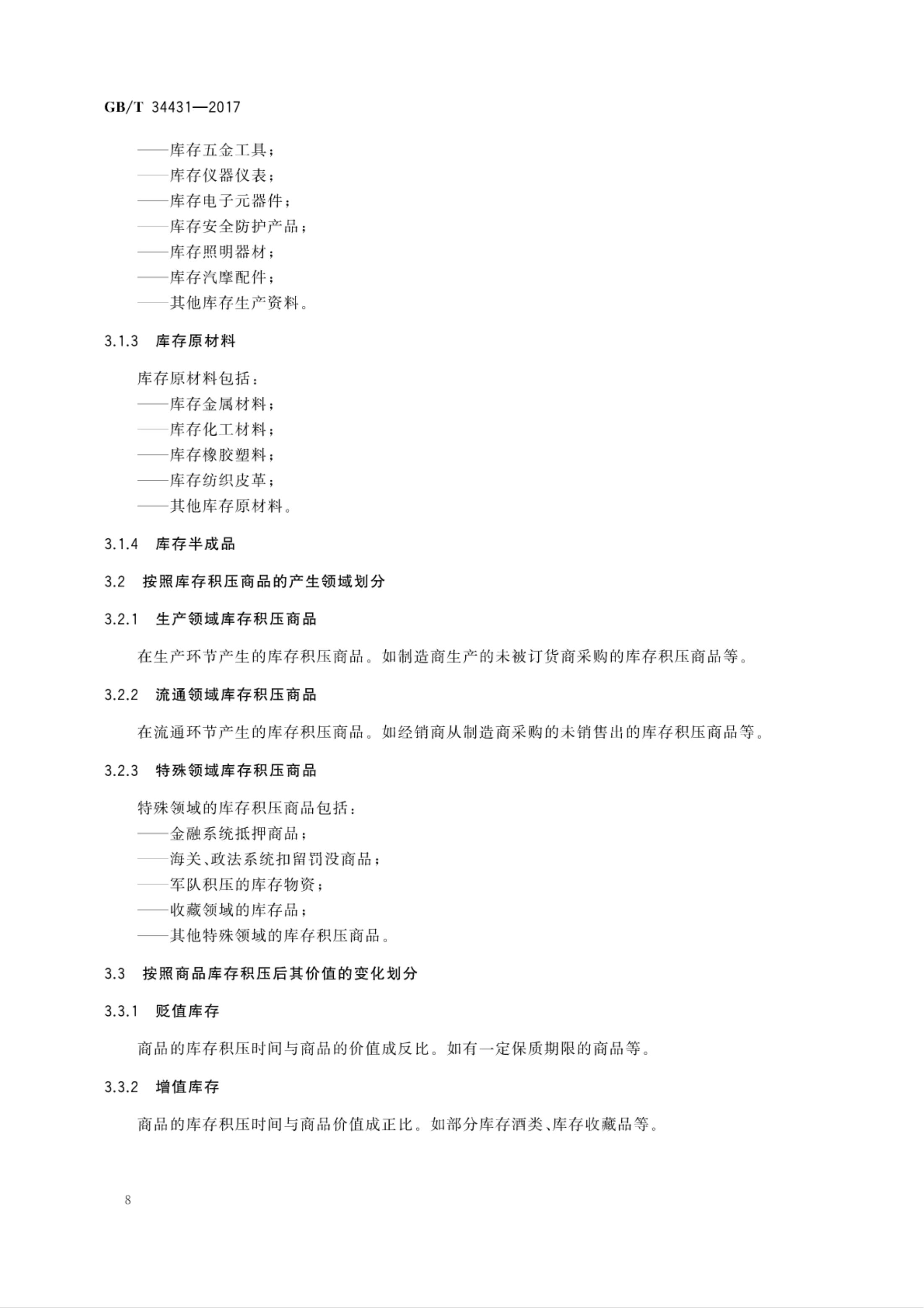 《库存积压商品流通术语和分类》GB/T 34431-2017
