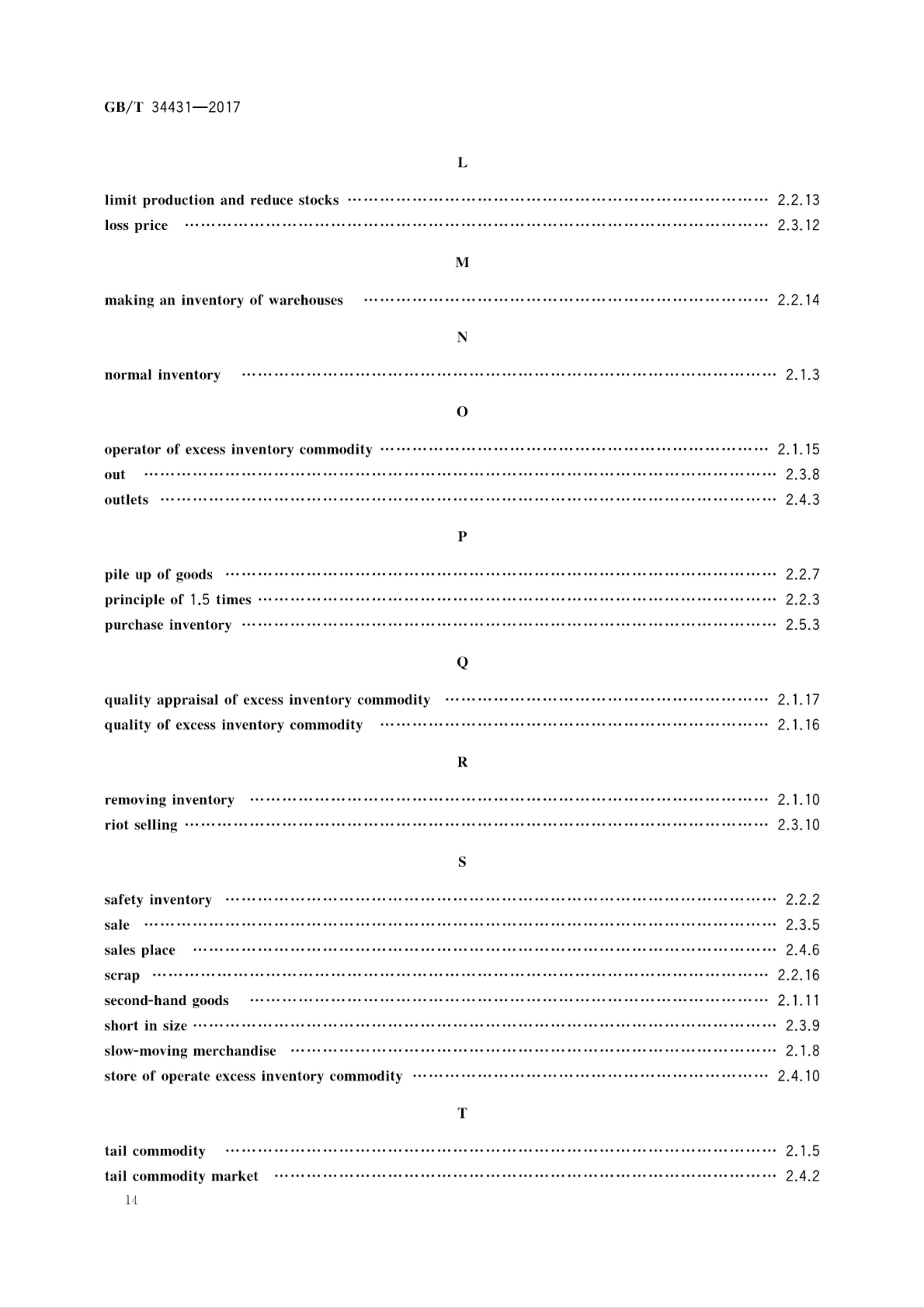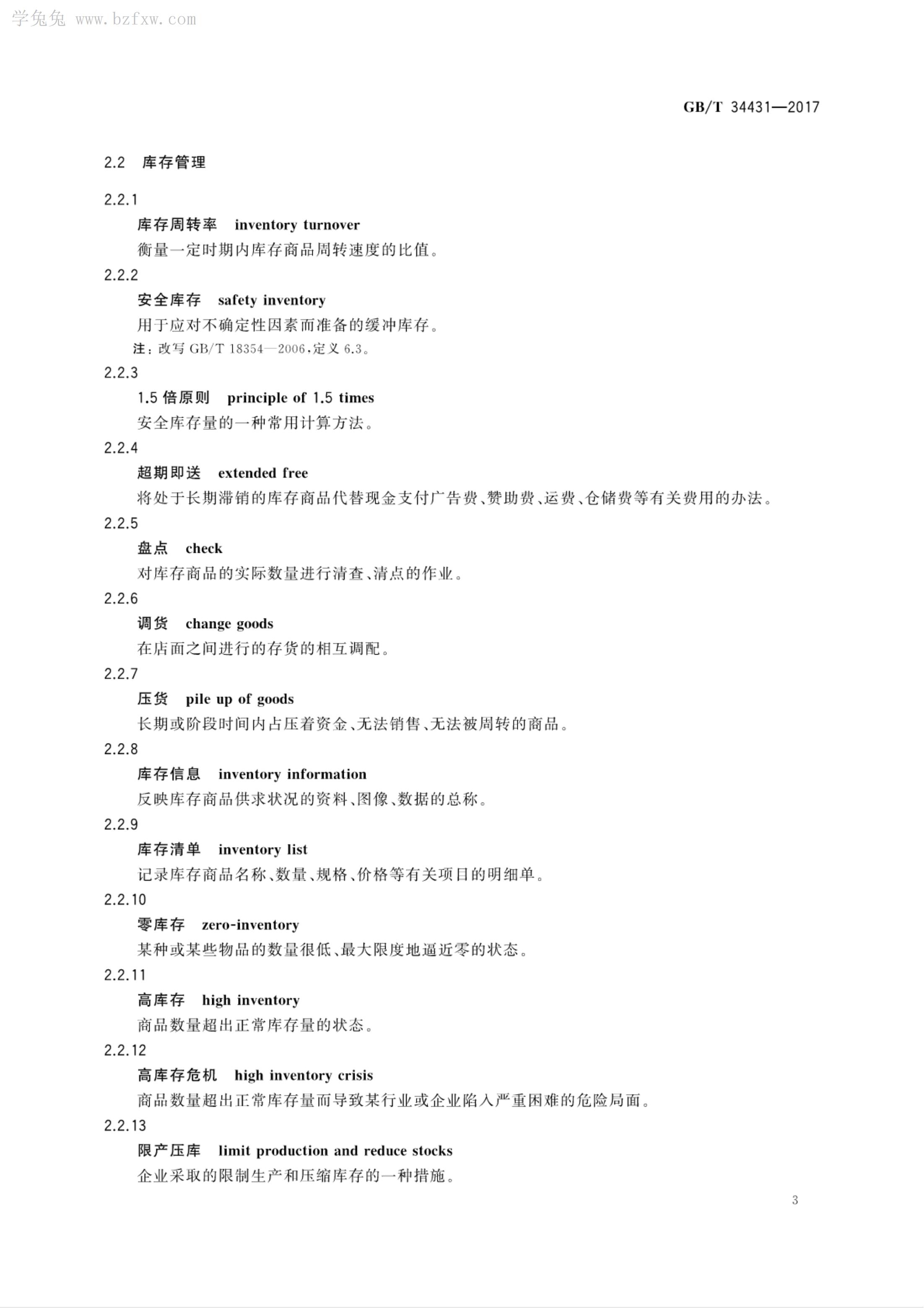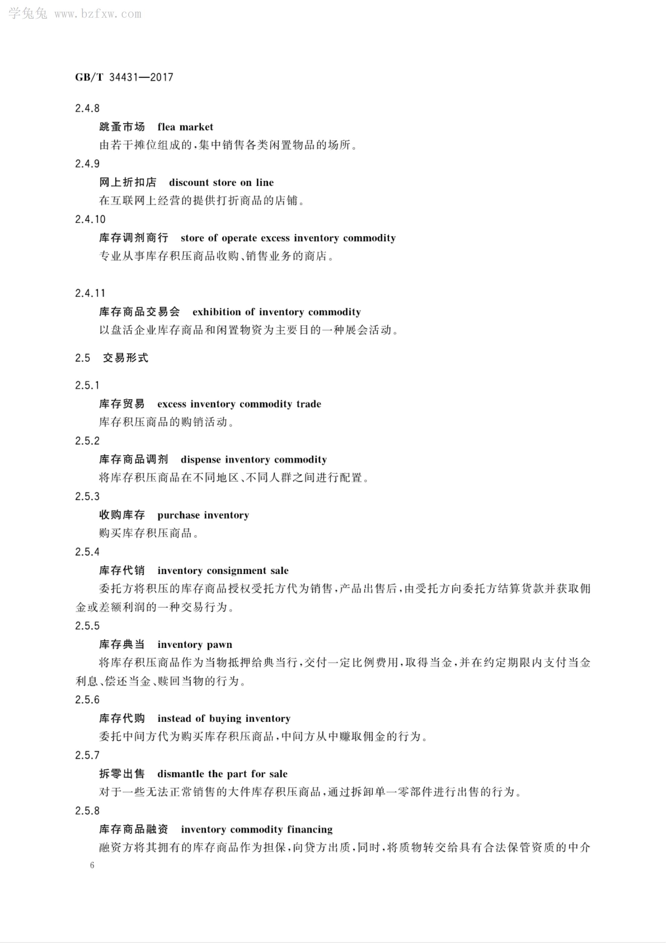 《库存积压商品流通术语和分类》GB/T 34431-2017