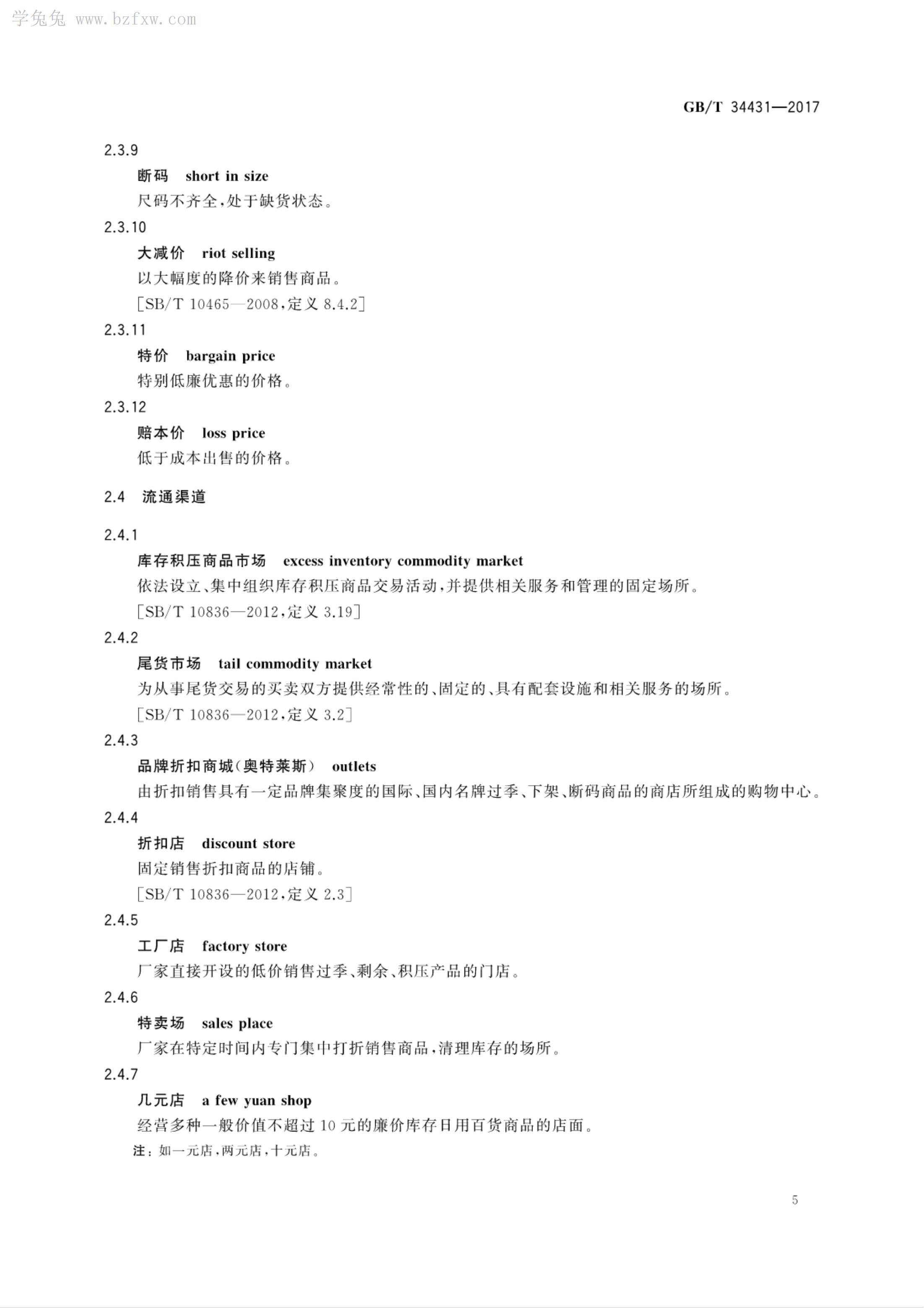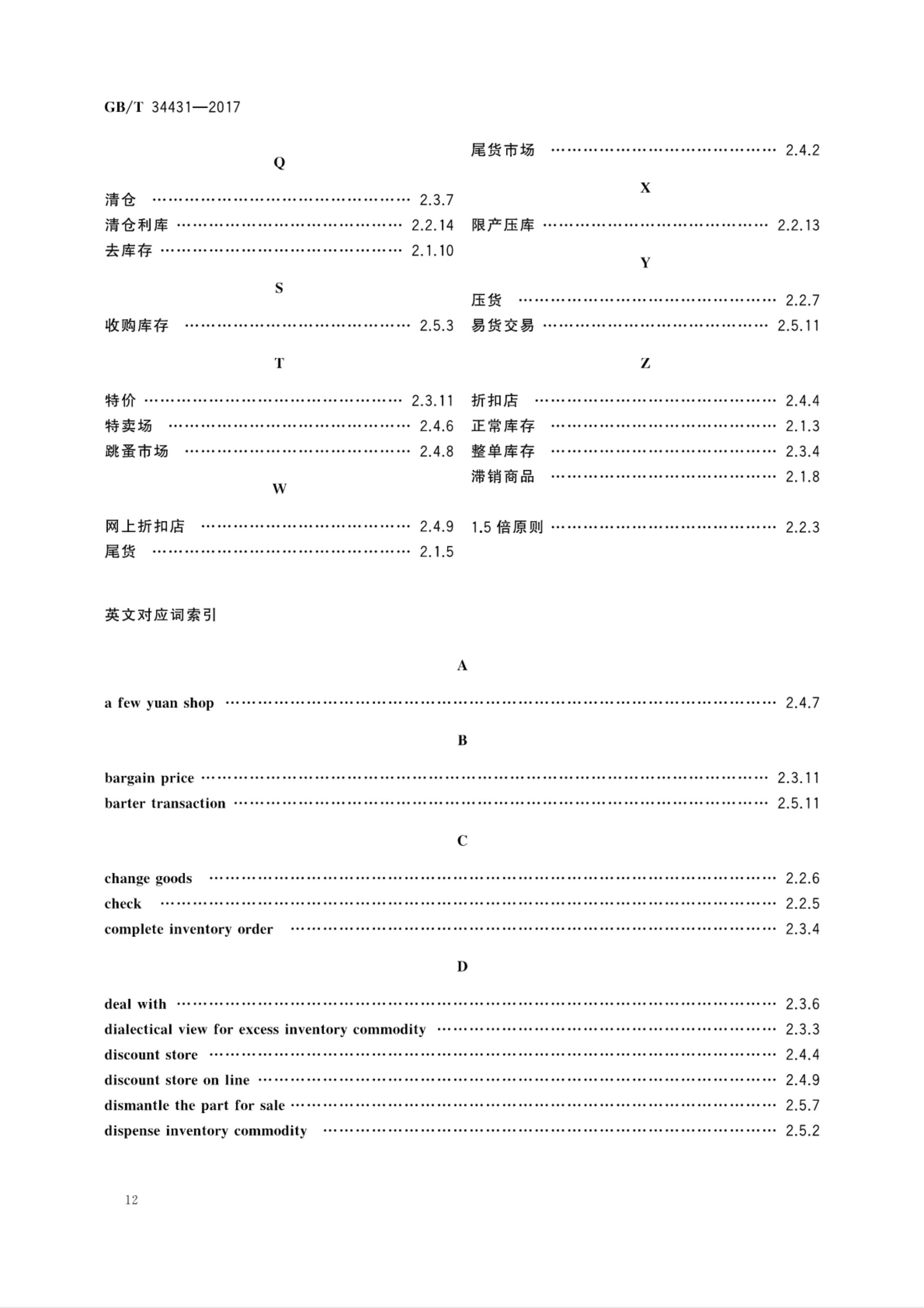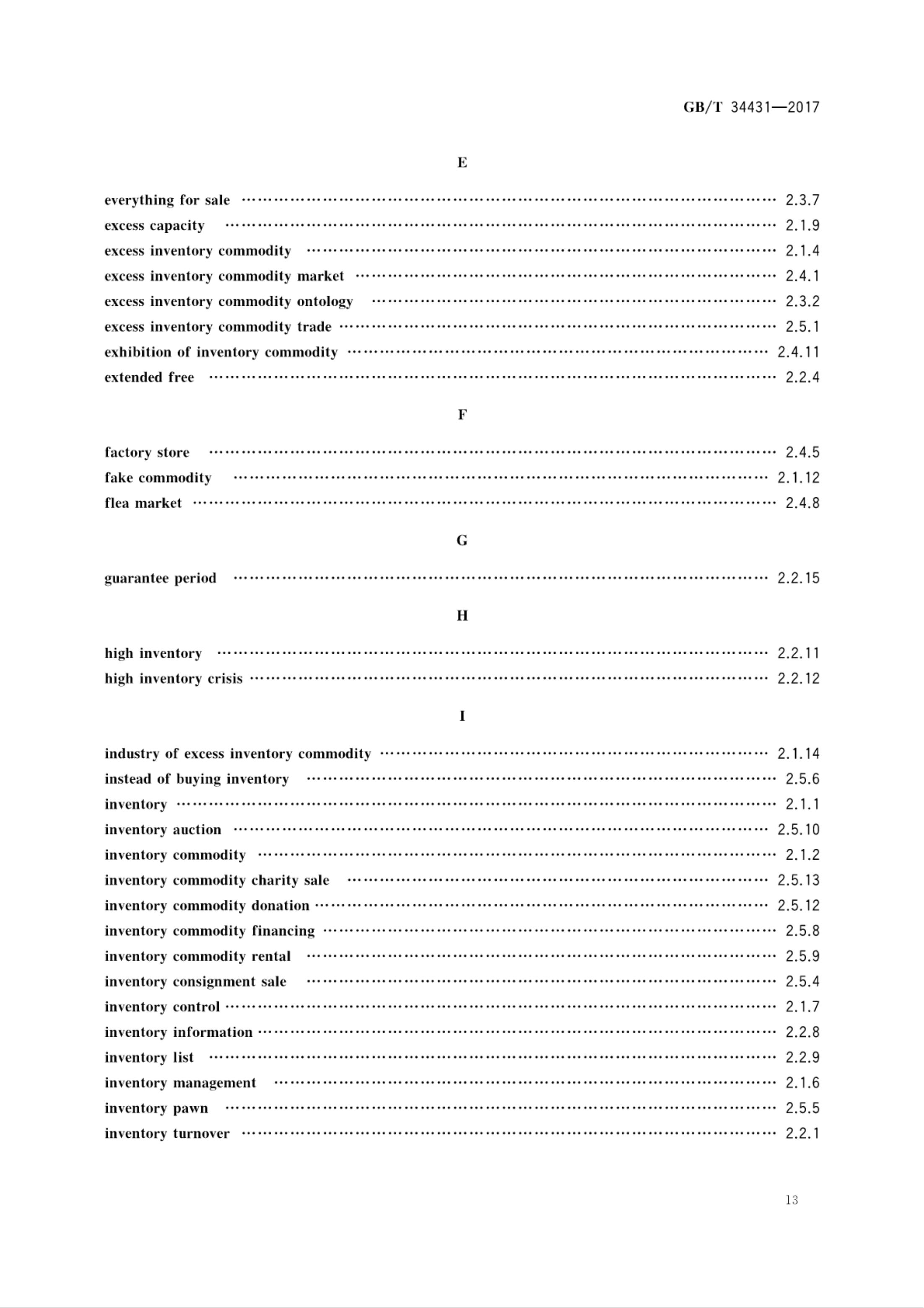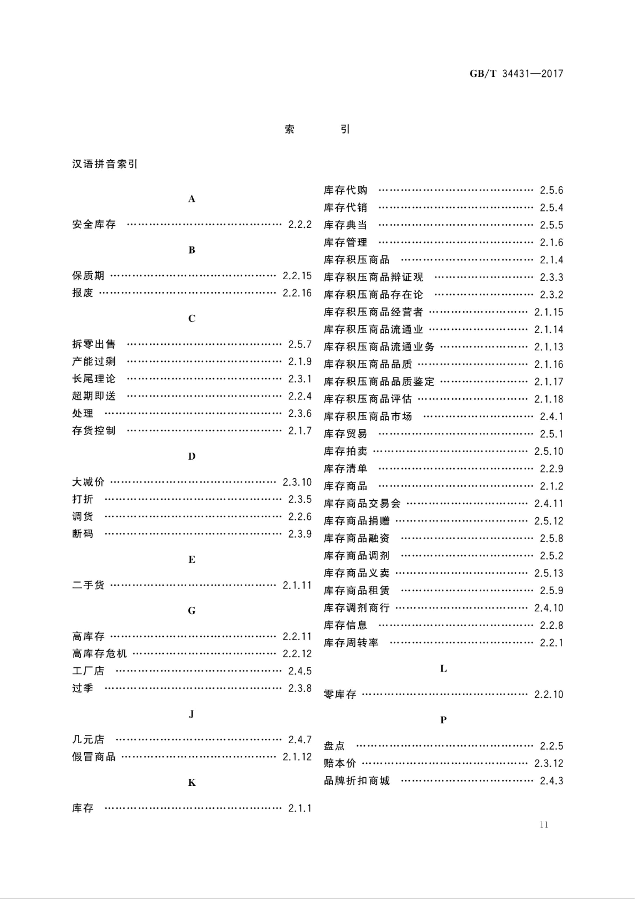 《库存积压商品流通术语和分类》GB/T 34431-2017