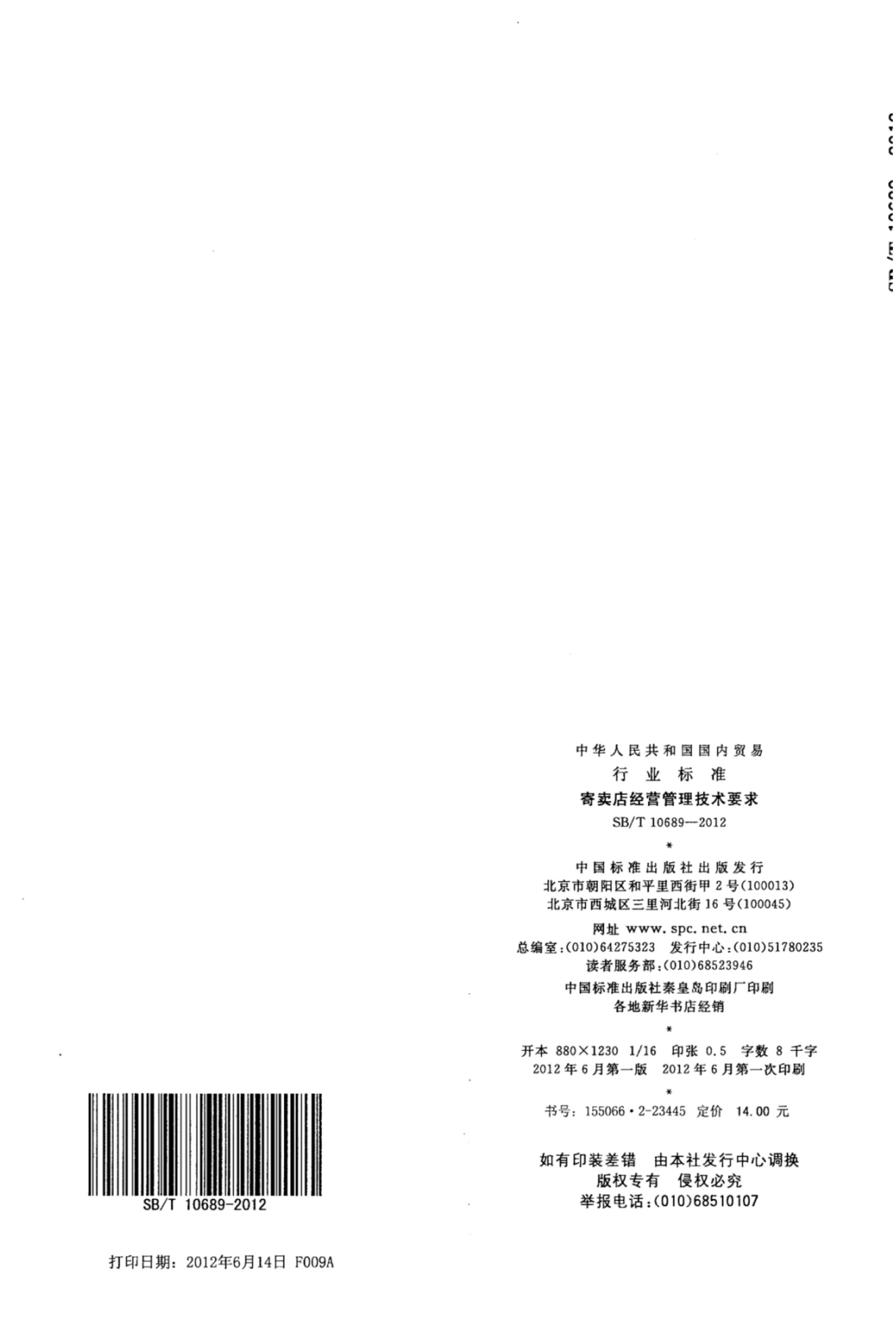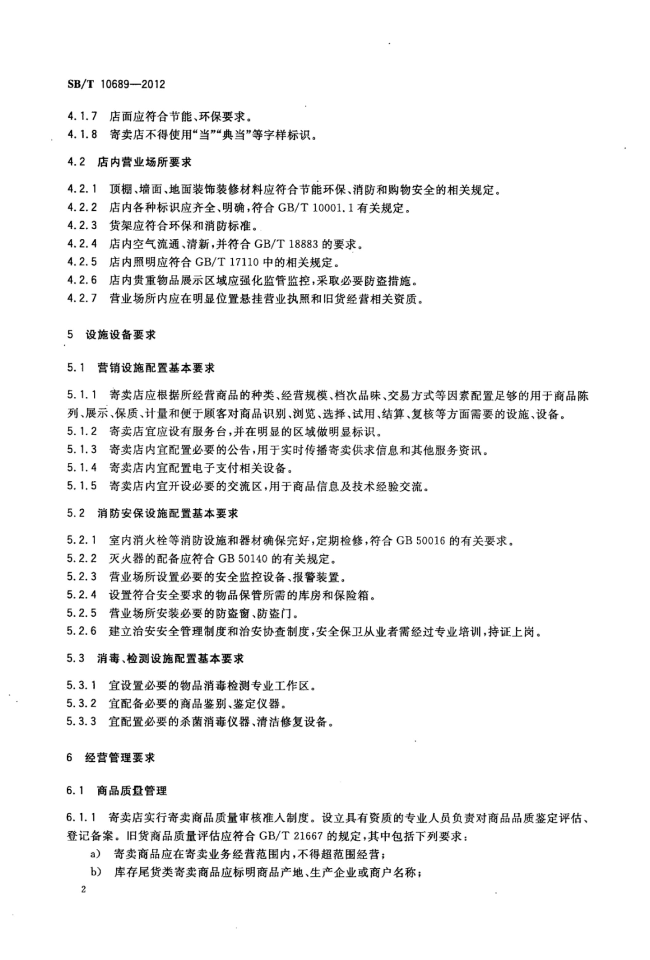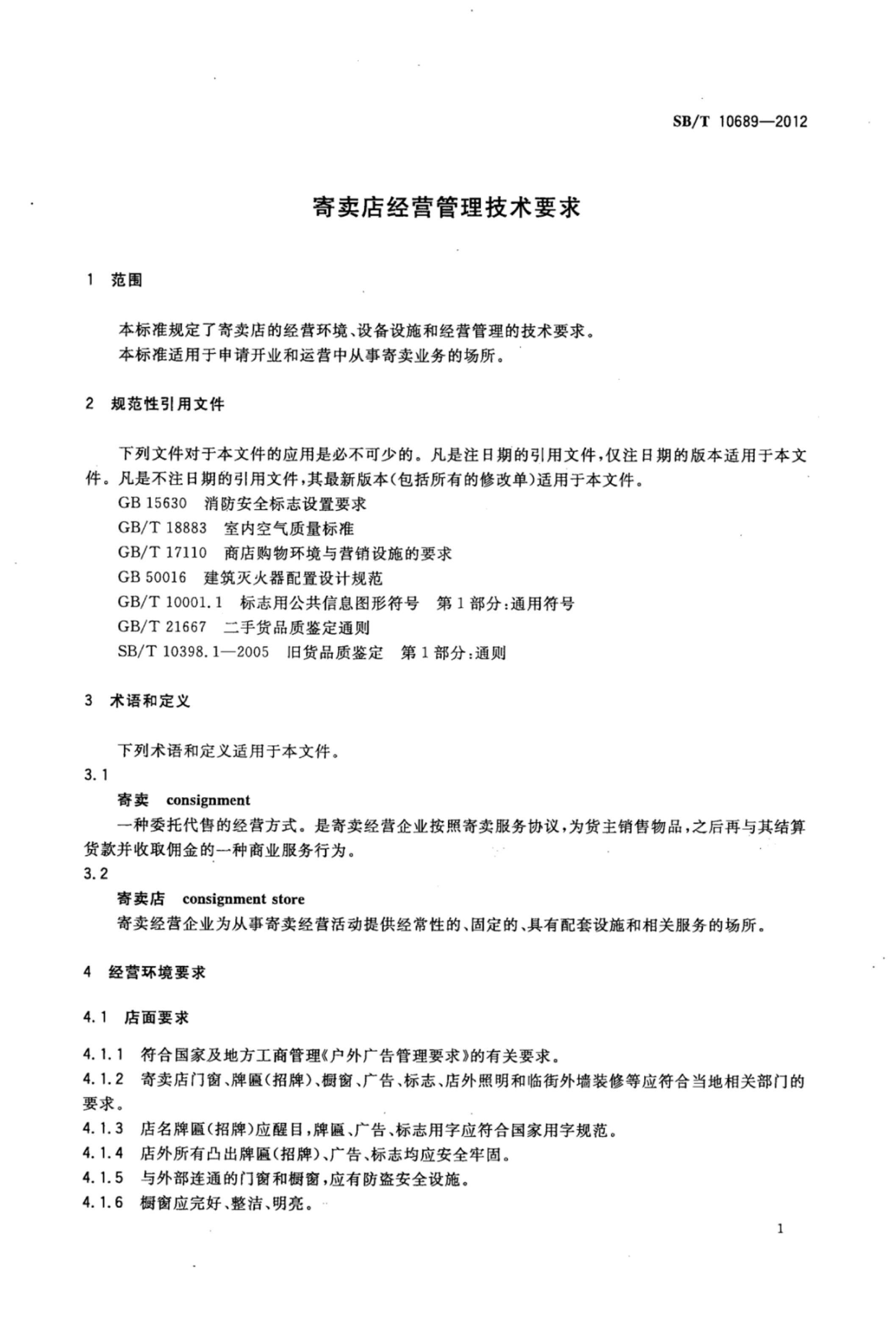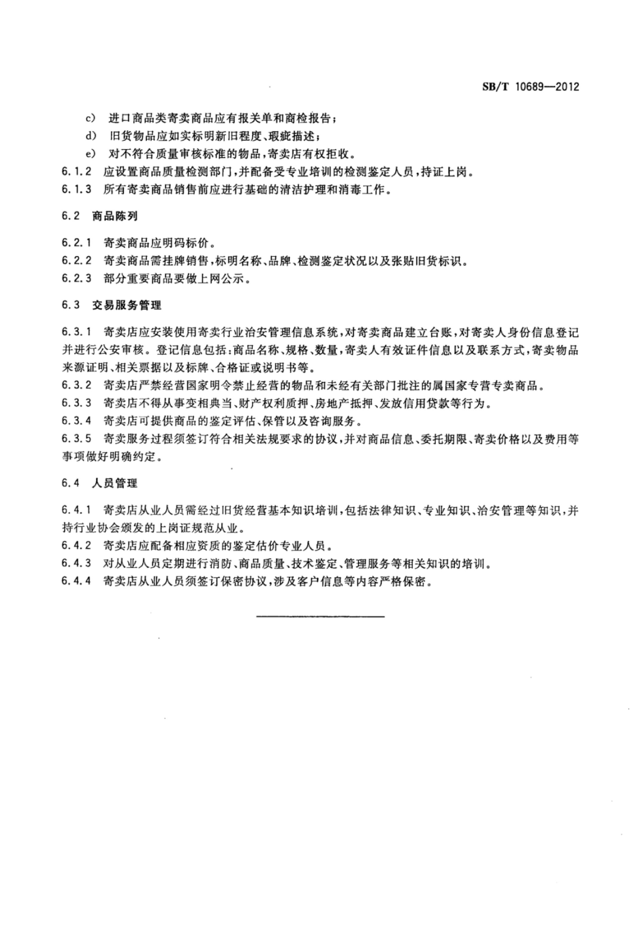 《寄卖店经营管理技术要求》SB/T 10689-2012